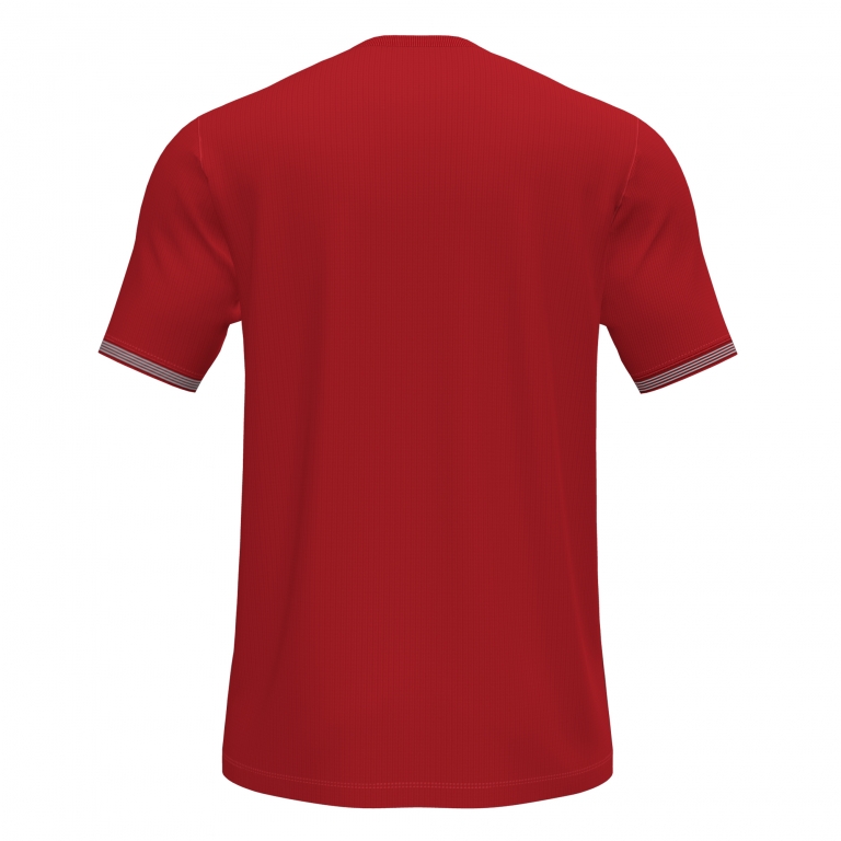 Koszulka z krótkim rękawem z dekoltem i mankietami ze ściągaczami. Posiada prążkowane pasy na bokach.Haftowane logo J na przodzie.